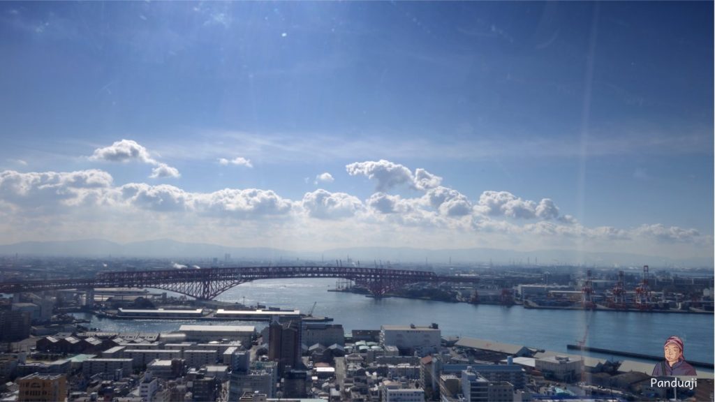 Sesampainnya di lantai 52 yang tidak terlalu ramai, tampak pemandangan Osaka Bay yang memikat. Dominasi warna biru pada laut dan langint yang begitu cerah dengan landskap bangunan kota modern begitu menakjubkan.