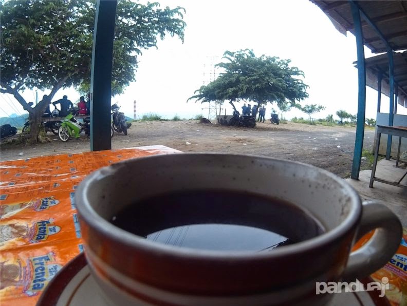 Meski baru saja istirahat di Dongko yang jaraknya tidak sampai 1 jam perjalanan, saya putuskan untuk memesan secangkir kopi hitam sebagai syarat biar pantes berhenti di warung sambil menikmati hawa dingin pegunungan. Sendirian! Iya sendiri!